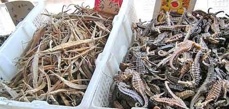 Een zeepaardje word niet veel gegeten. Dat komt door zijn goede camouflage en omdat ze te graterig zijn. Als een zeepaardje wel gegeten word dan komt dat meestal door grotere vissen, krabben, zeevogels en ook de mens. Zeepaardjes worden vooral gegeten door Chinese mensen. Die mensen zien het als een diner voor rijke mensen. Een ander groot gevaar voor een zeepaardje zijn stormen. Door de storm wordt het zeepaardje weggedreven van zijn voedselplaats. Hij zal daardoor uitgeput raken en dood gaan. Zeepaardjes worden door mensen ook gebruikt om te verkopen of als geneesmiddel (medicijnen) tegen astma en impotentie. Zeepaardjes worden ook verkocht als souvenir. Zeepaardjes worden bedreigd met uitsterving door dit alles.